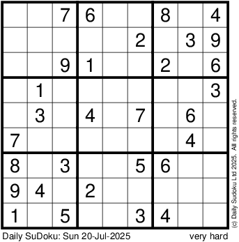 The Daily SuDoku: Sun 20-Jul-2025