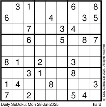 The Daily SuDoku: Mon 28-Jul-2025