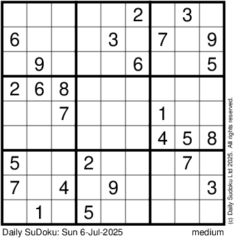 The Daily SuDoku: Sun 6-Jul-2025