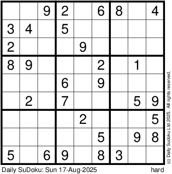 The Daily SuDoku: Sun 17-Aug-2025