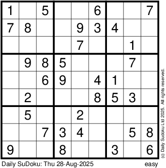 The Daily SuDoku: Thu 28-Aug-2025