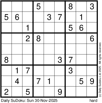 The Daily SuDoku: Sun 30-Nov-2025