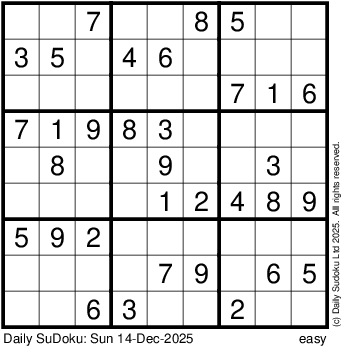 The Daily SuDoku: Sun 14-Dec-2025