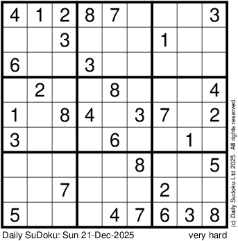 The Daily SuDoku: Sun 21-Dec-2025