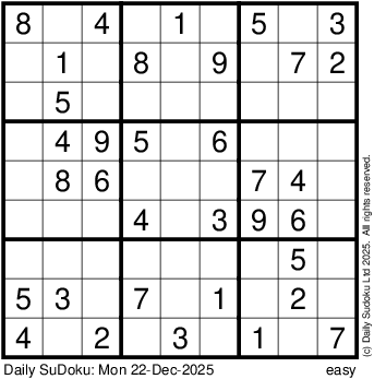 The Daily SuDoku: Mon 22-Dec-2025