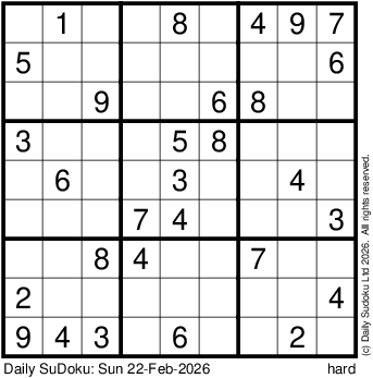 The Daily SuDoku: Sun 22-Feb-2026