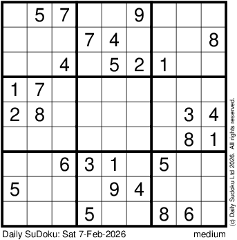 The Daily SuDoku: Sat 7-Feb-2026